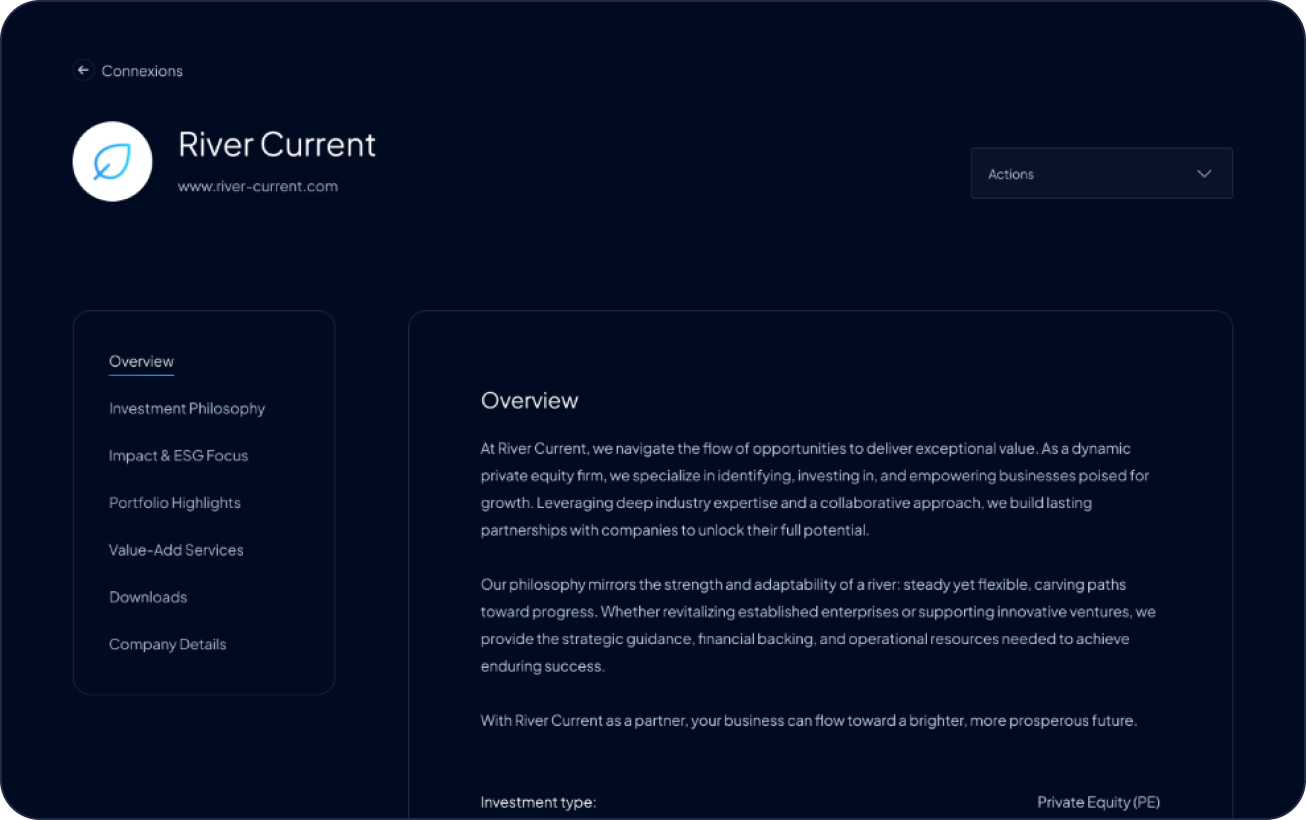 Effortlessly preview detailed profile overviews to quickly assess whether a business aligns with your objectives and strategic goals, enabling informed and efficient decision-making.